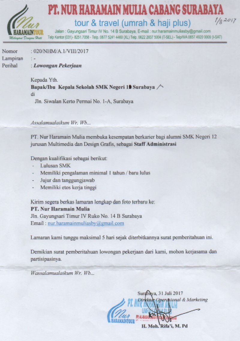 Lowongan · BKK Online SMK Negeri 1 Surabaya